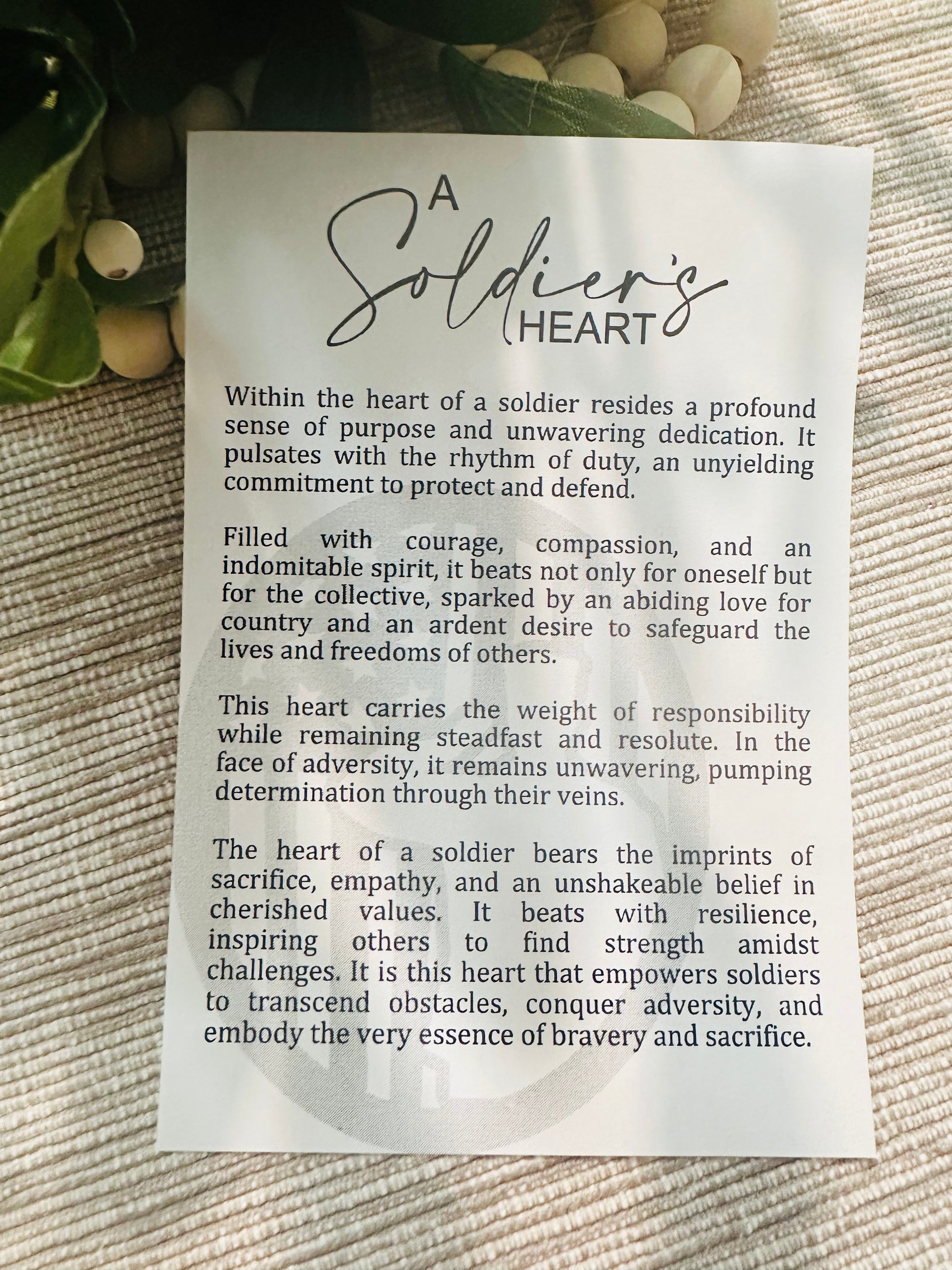 Celebrate the courage and dedication of soldiers with the Soldier’s Heart Ornament. Crafted from wood, this elegant ornament includes a heartfelt story card that honors the bravery and sacrifice of those who serve. A meaningful keepsake that brings warmth and reflection to any space.