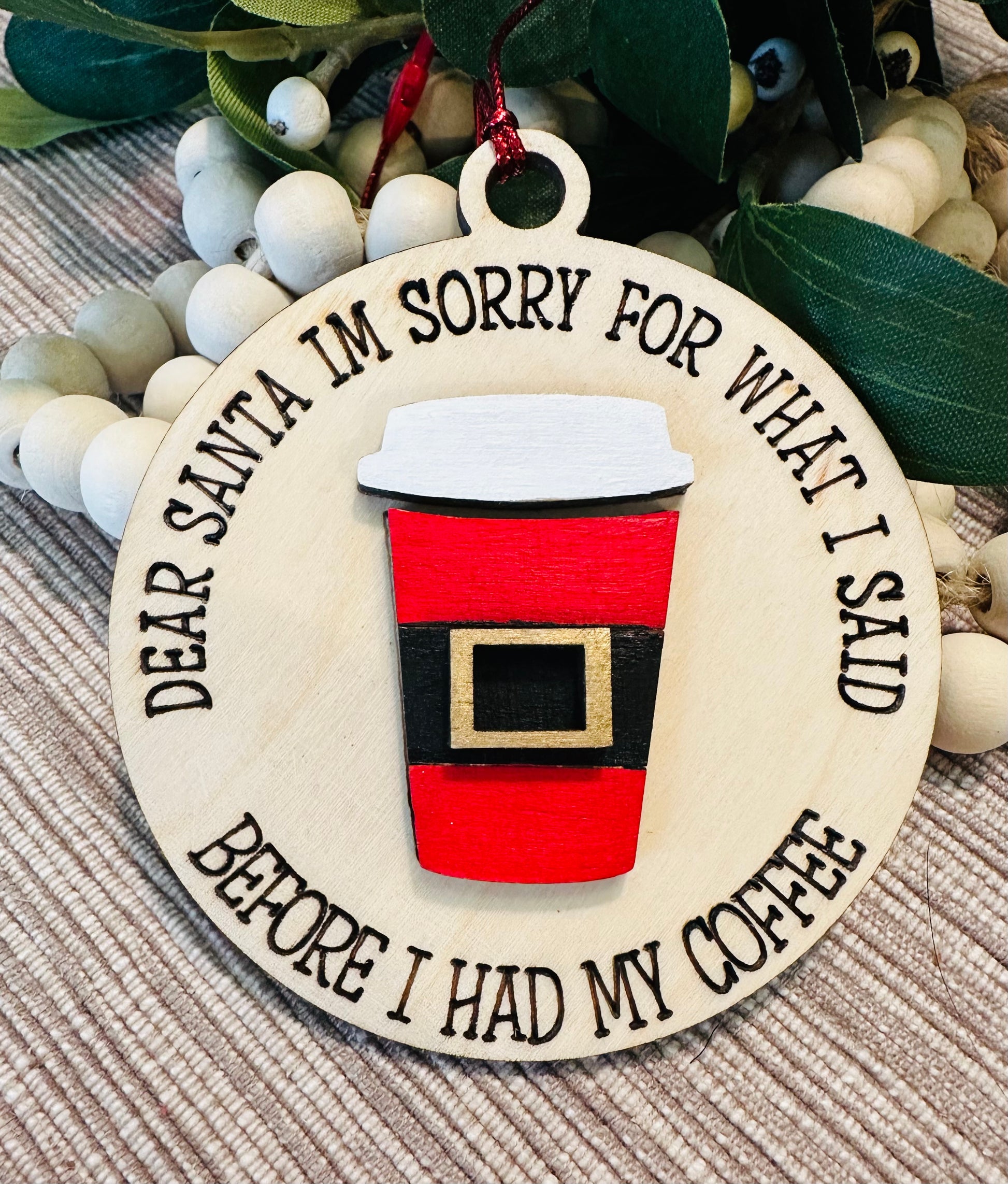 Enhance your holiday decor with our hand-painted and laser engraved Before I Had My Coffee Ornament. The perfect addition to any tree, this ornament is a testament to coffee lovers everywhere. Made with expert craftsmanship, it's a unique and charming piece that will bring joy to your home.