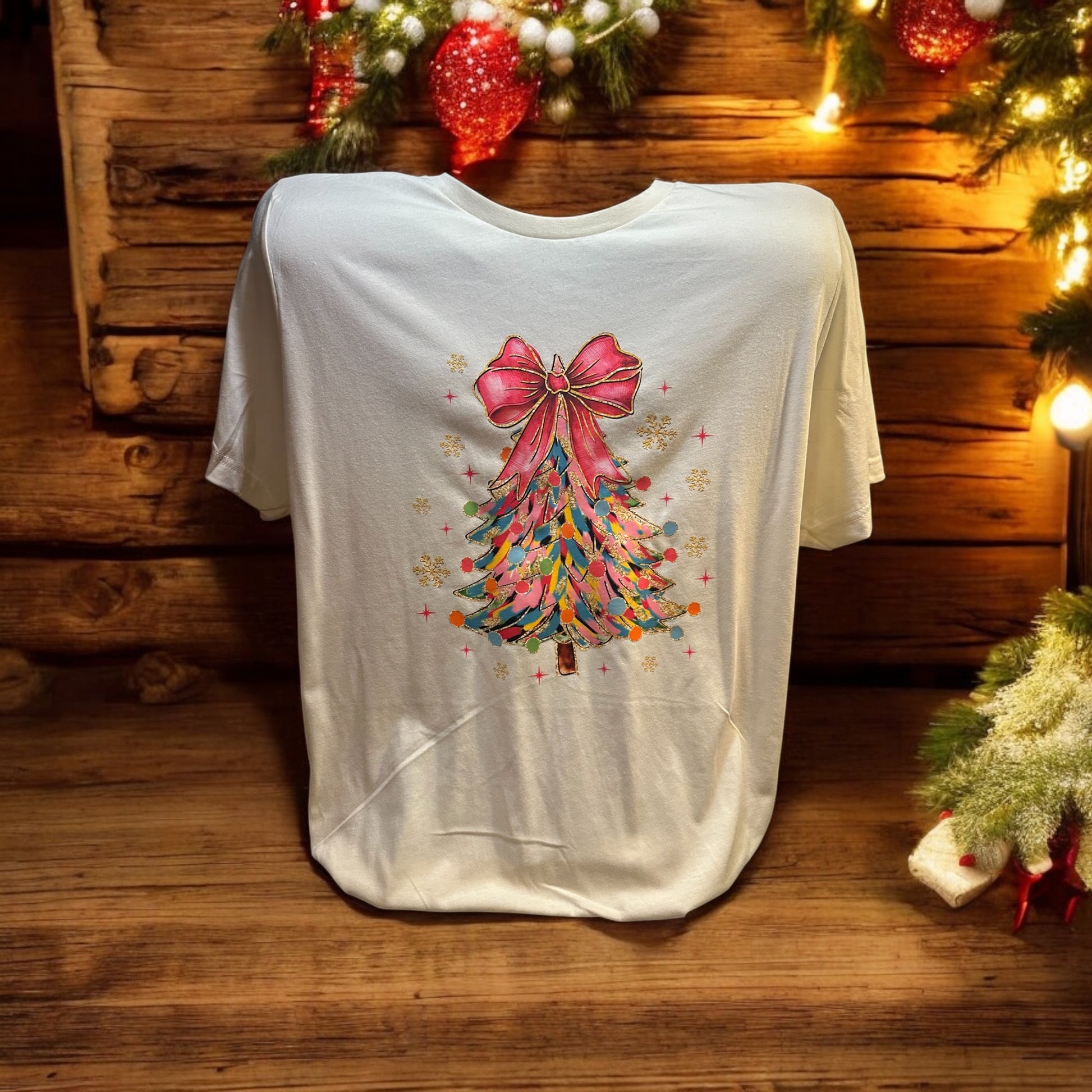 Celebrate the holiday spirit in cozy style with this Christmas Tree & Bow T-Shirt. Crafted for softness and comfort, it’s perfect for festive fun or relaxing by the fire. The playful design adds a cheerful touch to your seasonal wardrobe, making every day feel like a holiday.