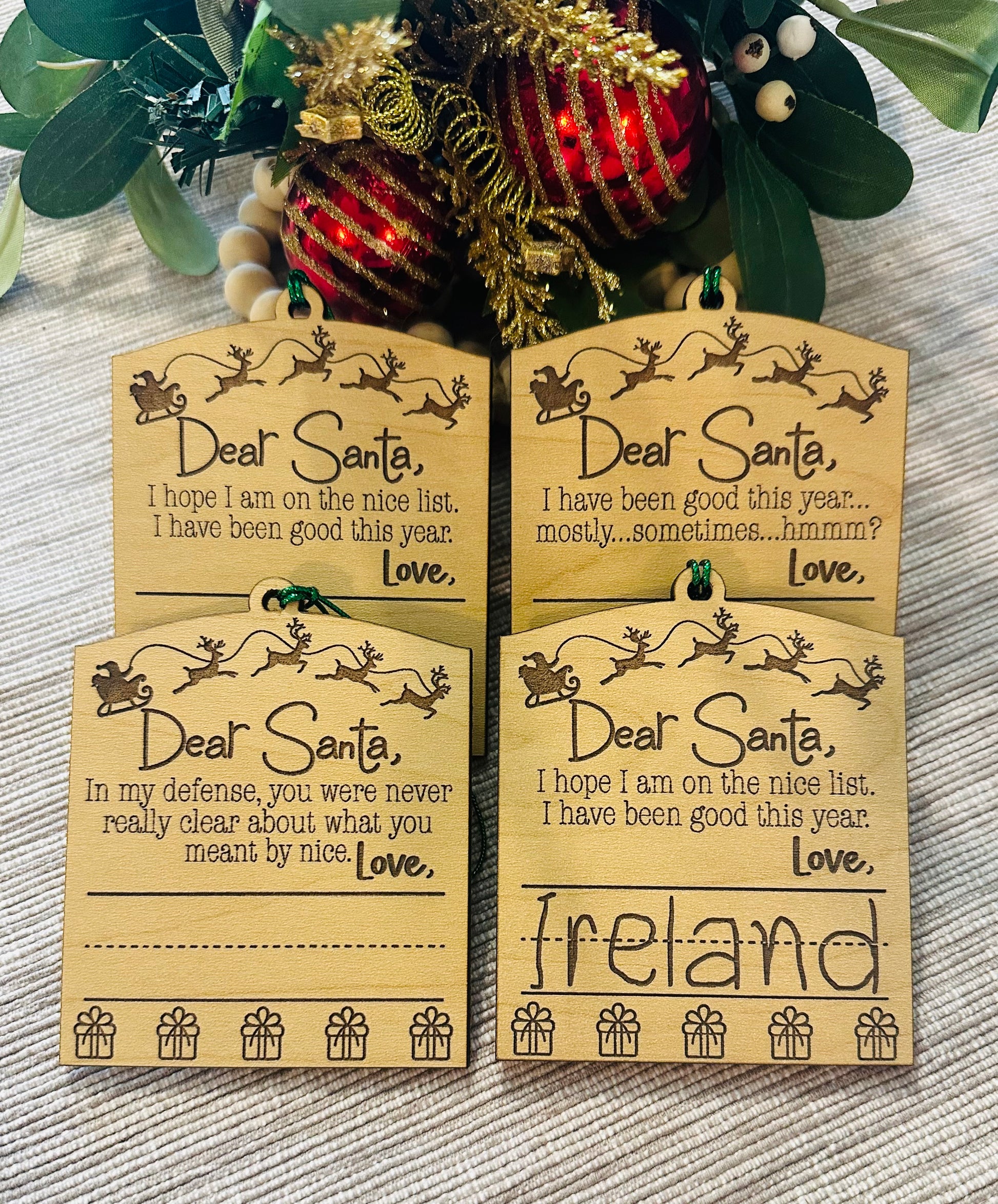 Add a touch of holiday humor to your tree with this playful wooden ornaments featuring cheeky “Dear Santa” sayings. Perfect for spreading festive smiles, it captures the fun of holiday mischief with messages like “I have been good this year… mostly… sometimes… hmmm?” A charming way to celebrate the season with a wink.