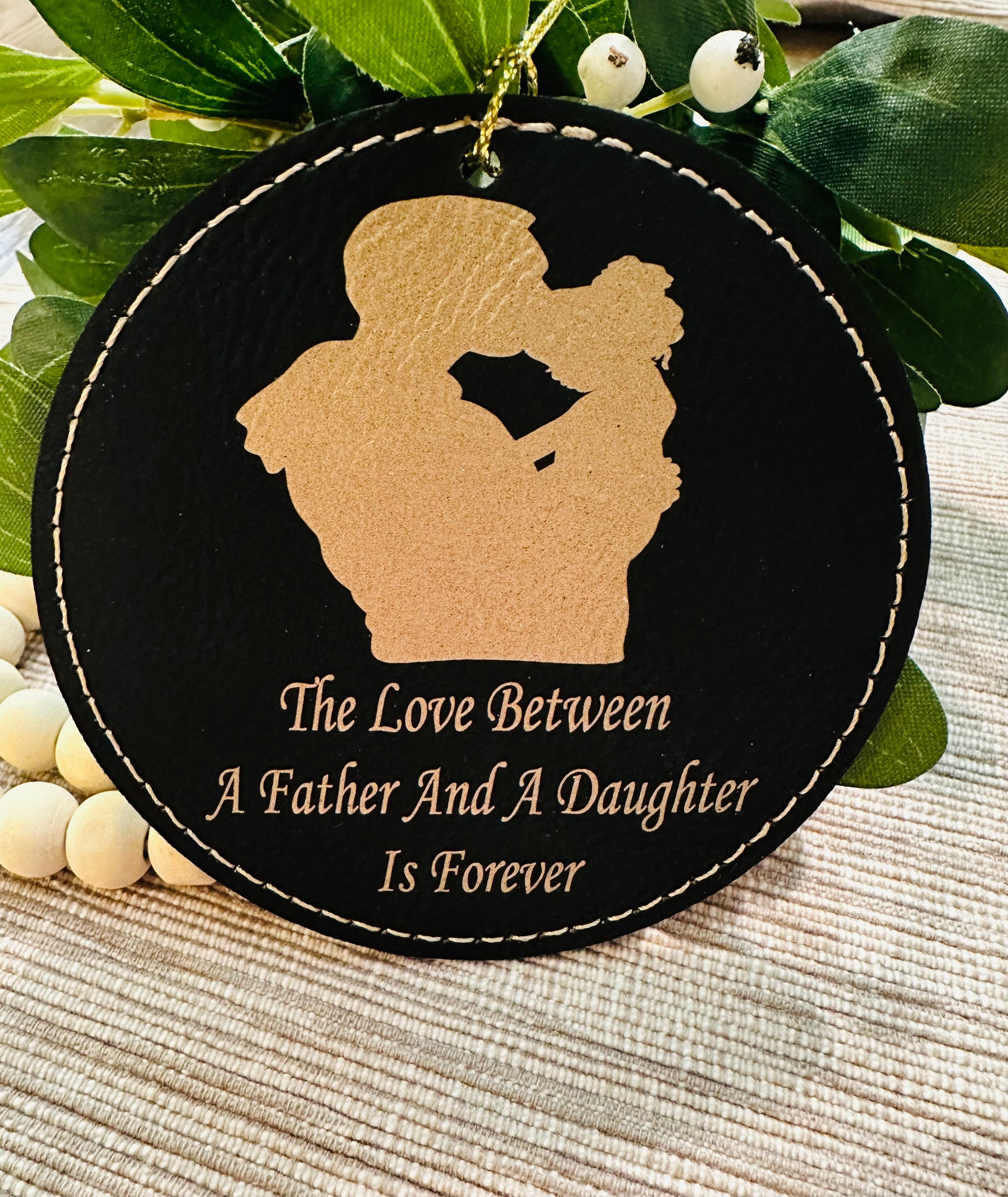 Celebrate the special bond between father and daughter with our beautiful ornament. Featuring a heartwarming scene of a father kissing his little girl, this ornament is a sweet reminder that the love between a father and daughter lasts forever. Perfect for decorating your Christmas tree or as a sentimental gift.