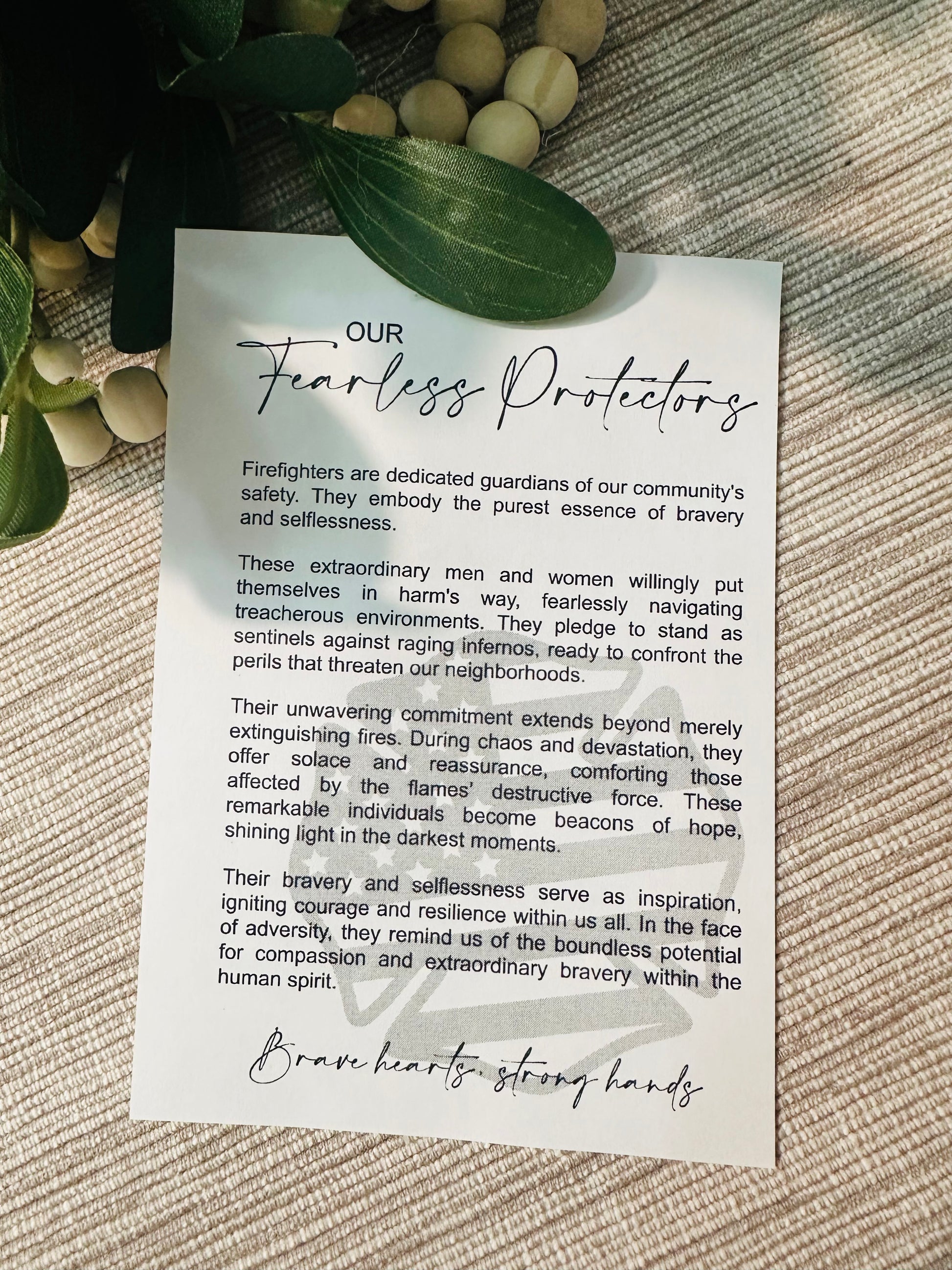 Honor the valor and dedication of firefighters with the Fearless Protectors Firefighter Ornament. This finely crafted wooden piece is accompanied by a thoughtful story that eloquently celebrates the extraordinary courage and commitment of these everyday heroes. A distinguished addition to your holiday collection, it serves as a meaningful tribute to those who protect and serve.