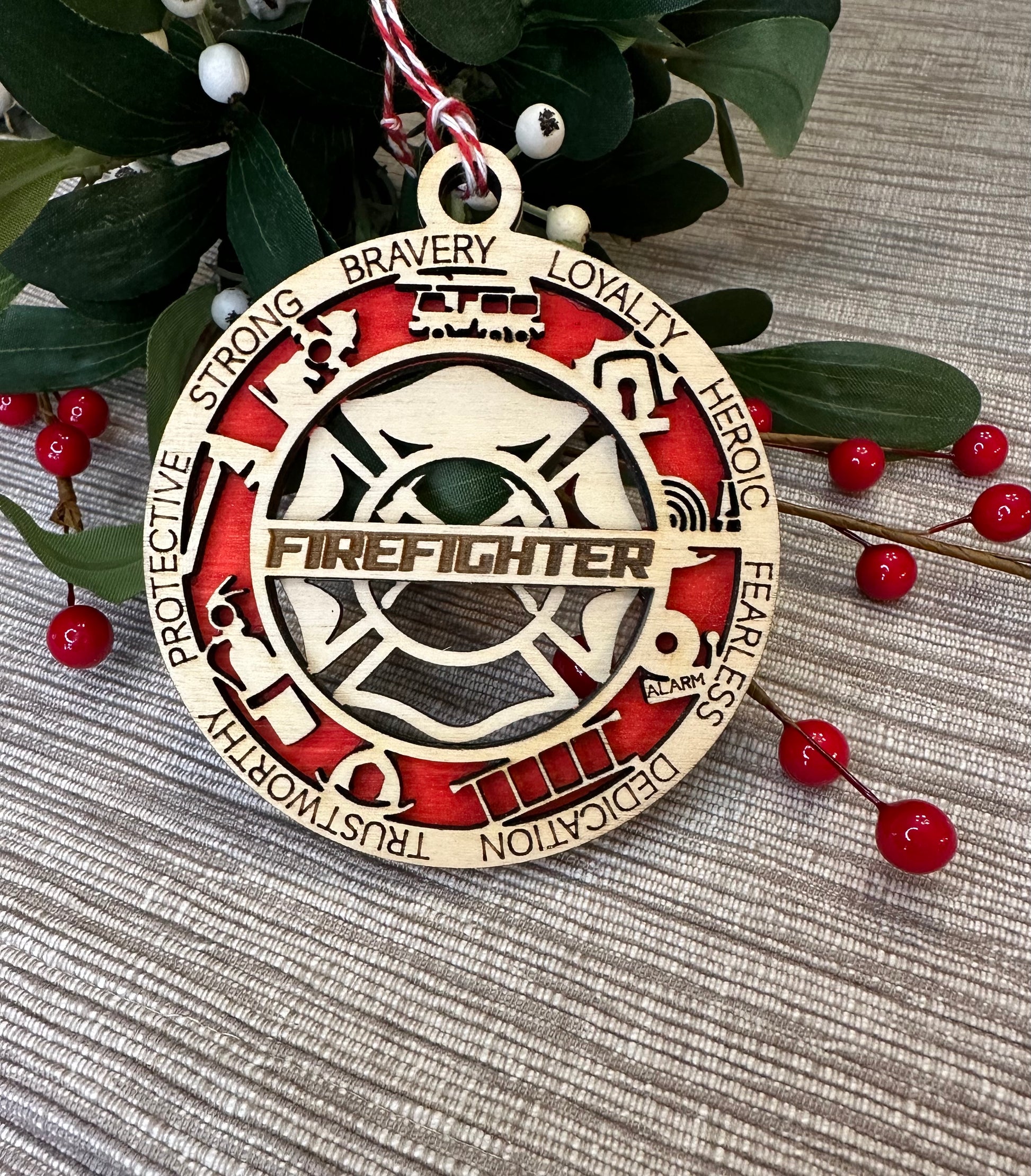 This Firefighter Ornament is the perfect way to show appreciation for your local fire service. Crafted from wood and hand painted, this beautiful ornament is perfect for your holiday tree or to display year round. Show your support for firefighters everywhere with this special keepsake.