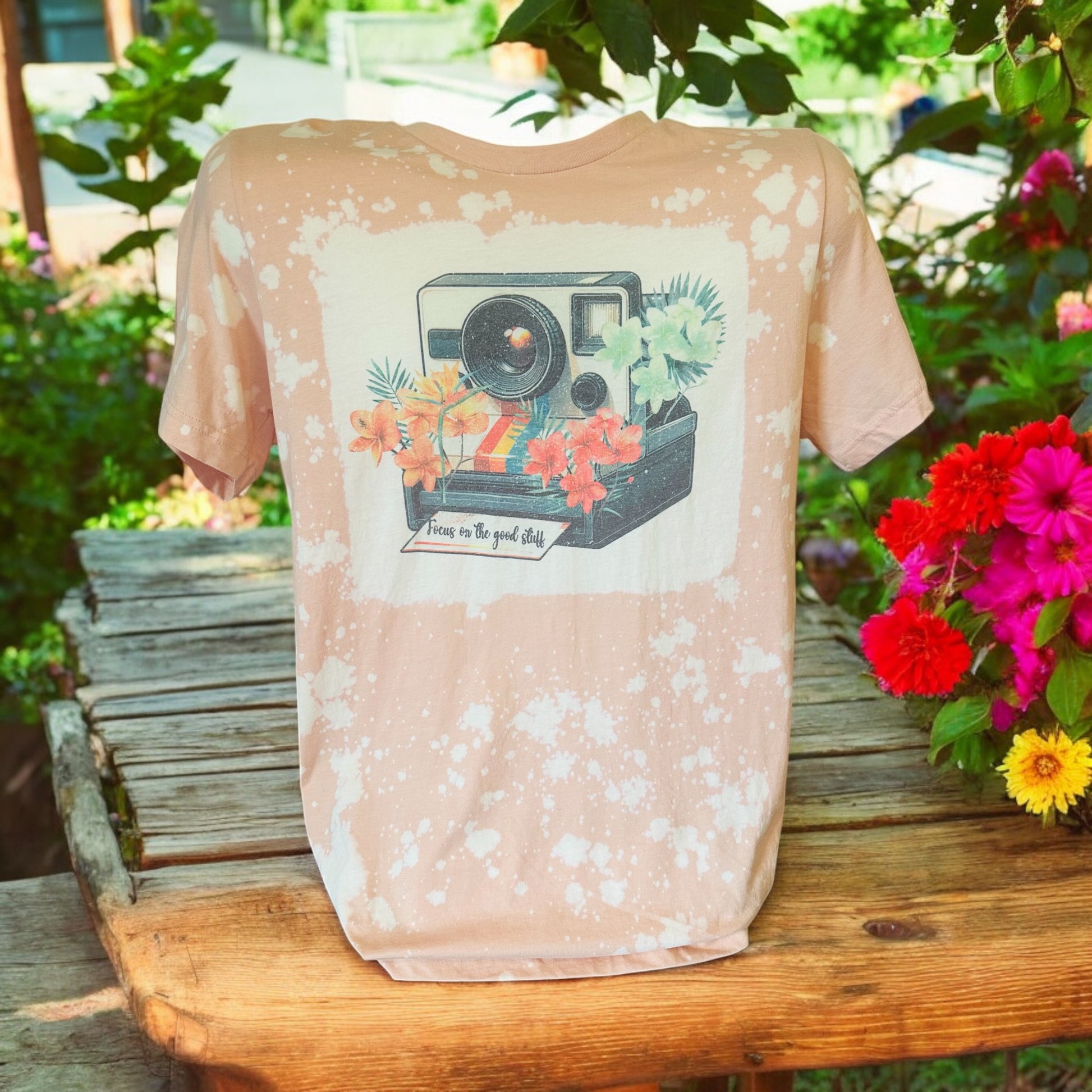This Bleached Focus On The Good Stuff T-Shirt is not your average tee. Handmade for ultimate comfort, its softness will make you never want to take it off. It's the perfect reminder to focus on the good stuff in life. (And trust us, this shirt is definitely one of them!)