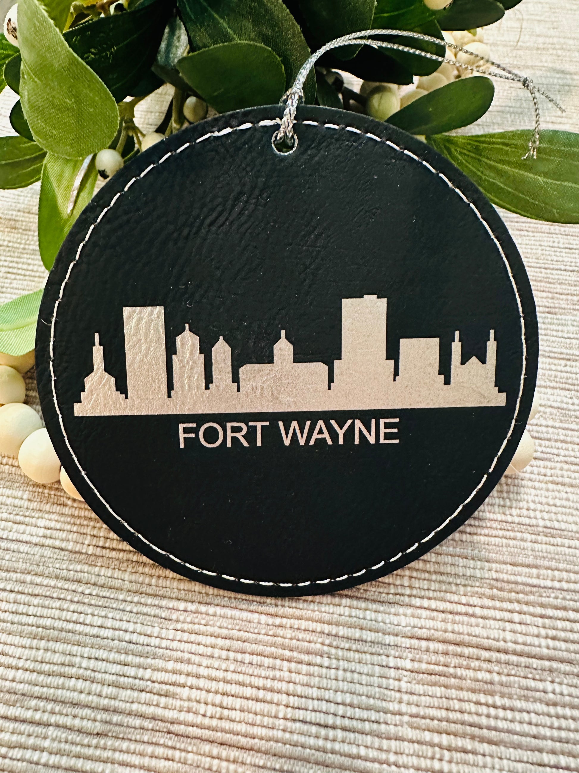 Bring the charm of Fort Wayne, IN into your holiday decor with our Fort Wayne Skyline Ornament! Featuring an engraved leatherette design of the iconic skyline, this ornament is the perfect addition to your tree. Show off your hometown pride in a unique and stylish way!
