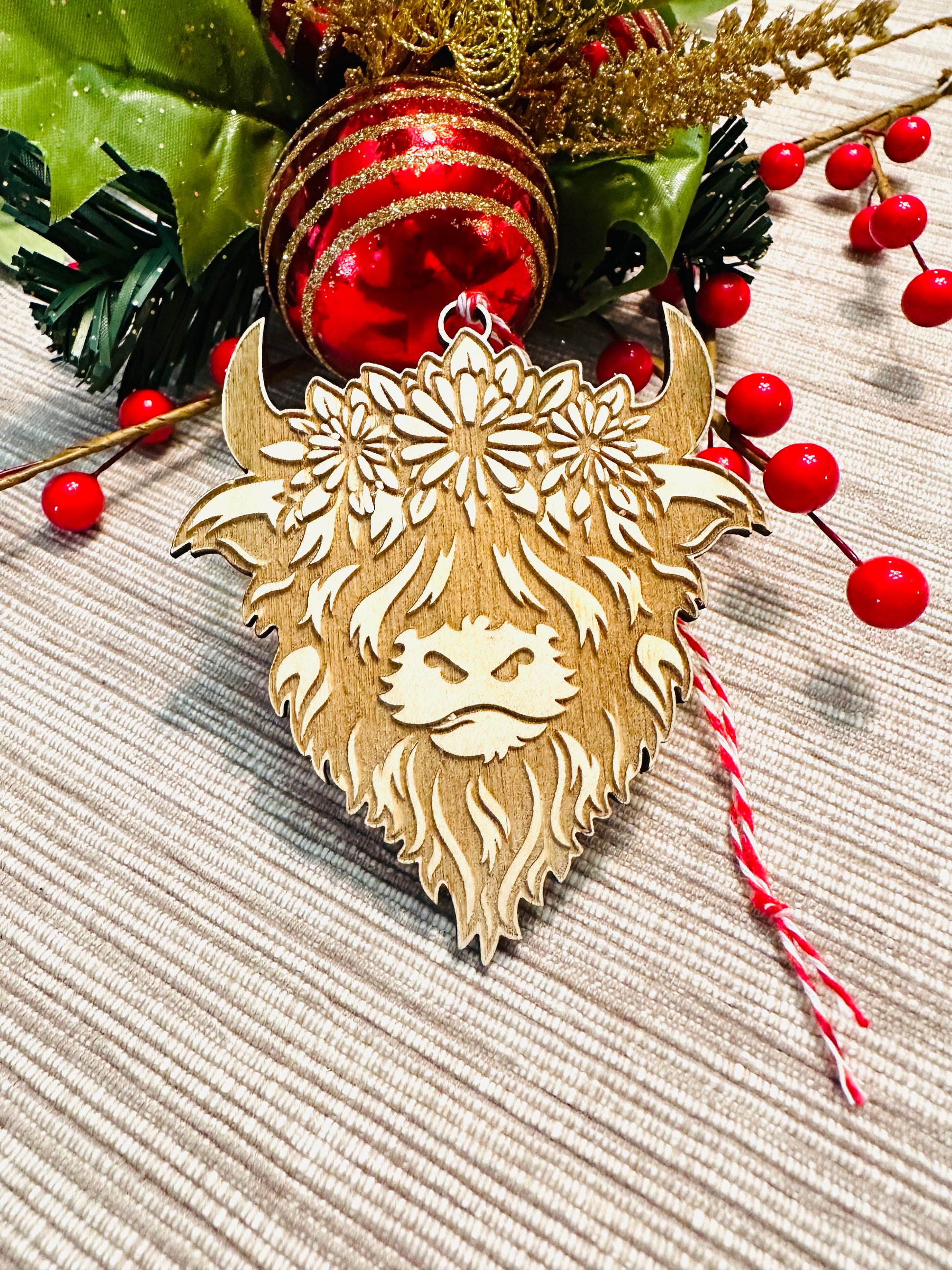 This Highland Cow Ornament is the perfect addition to any holiday decor. Crafted from laser-engraved wood, it adds detail and beauty to your Christmas tree. Its unique design also makes it a great gift for any occasion.