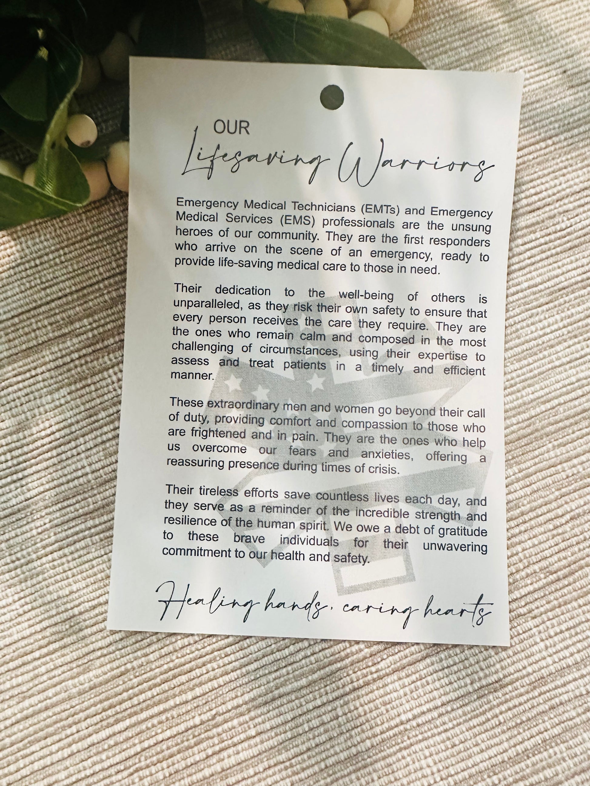 Celebrate the dedication of EMTs with this elegant wooden ornament, accompanied by a heartfelt story card that honors their lifesaving commitment. Perfect for showing appreciation, it serves as a meaningful keepsake that highlights the extraordinary impact of emergency medical technicians.
