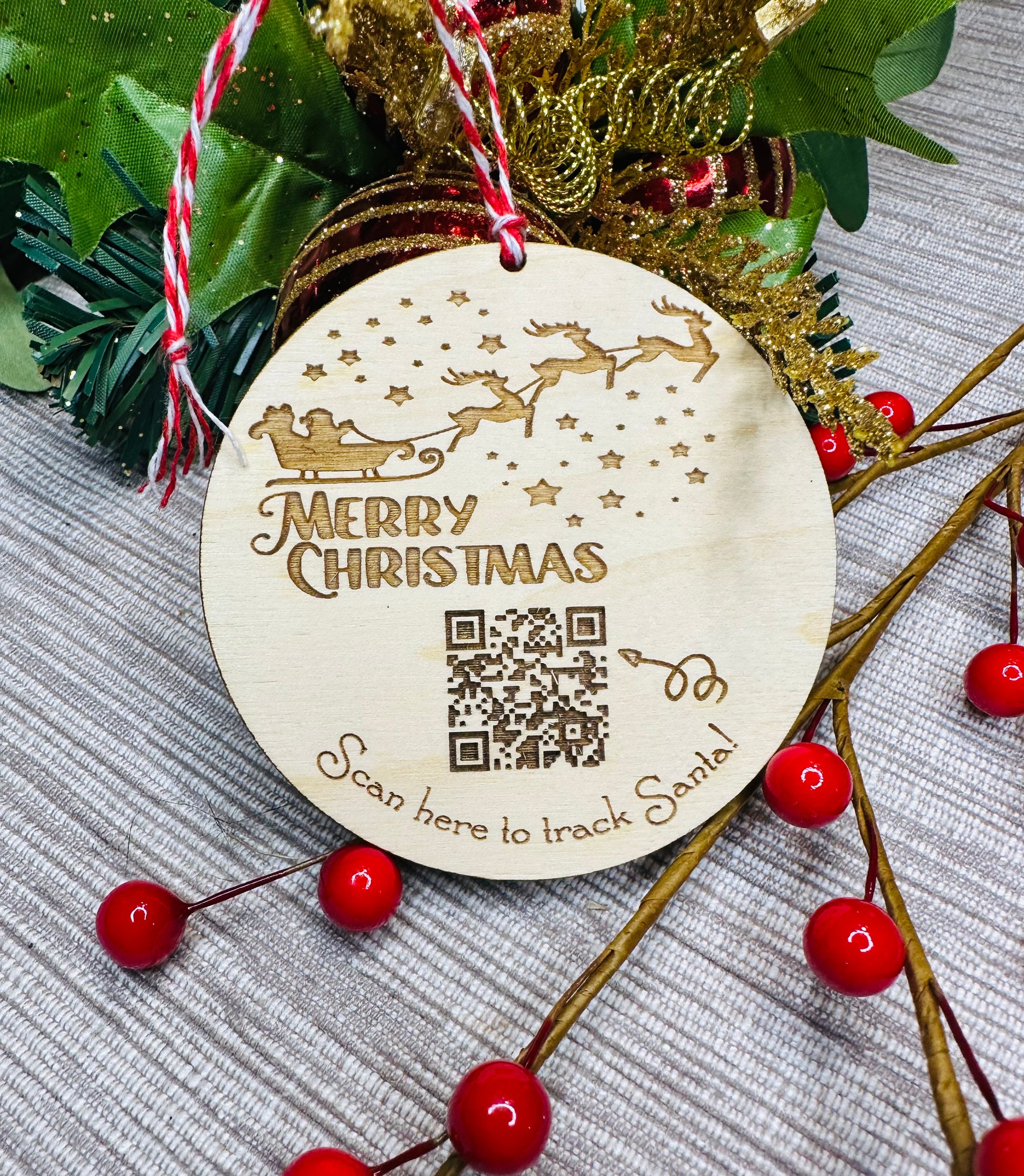 This unique Santa Tracker Ornament is the perfect way to get in the holiday spirit with a modern twist! It is crafted from solid wood and includes a QR code that links to an online countdown with virtual games. Make Christmas morning even more magical with this engaging wooden ornament.