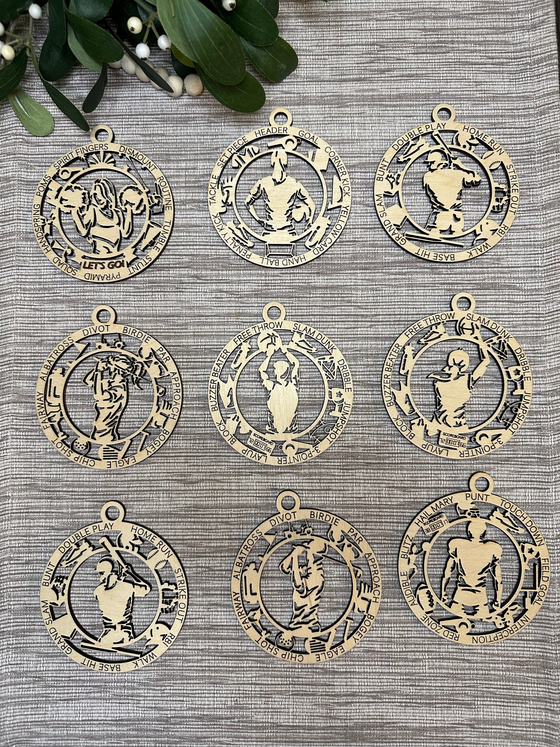 Our customizable sports ornaments are the perfect way to commemorate a special moment, milestone, season or occasion. Made from high-quality, natural wood, these ornaments can be personalized with a child's name, sports number, or high school name to create a unique and cherished keepsake.