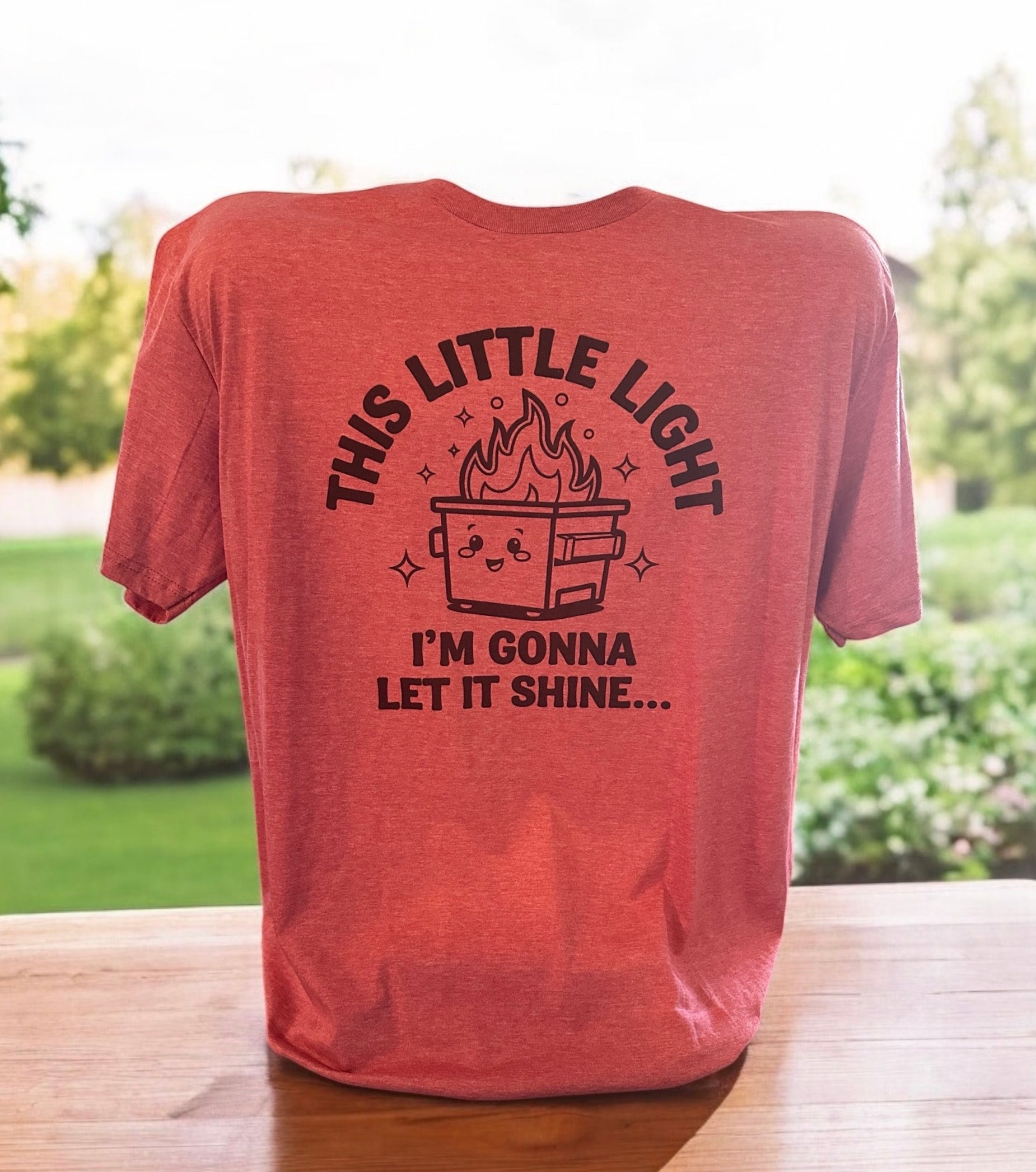 Brighten your day with the This Little Light T-Shirt! Featuring a fun Dumpster Fire and the playful phrase “This little light, I’m gonna let it shine,” this tee combines humor with comfort. Made from soft, cozy fabric, it’s perfect for showing off your lighthearted spirit while staying comfy all day long.